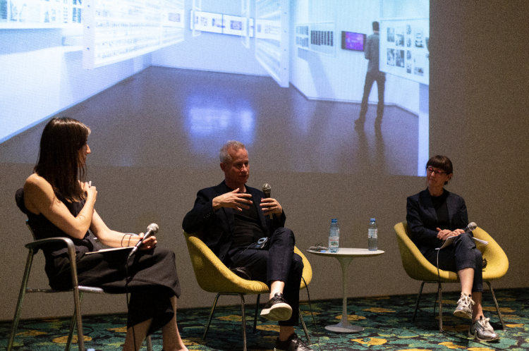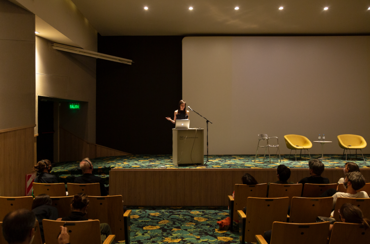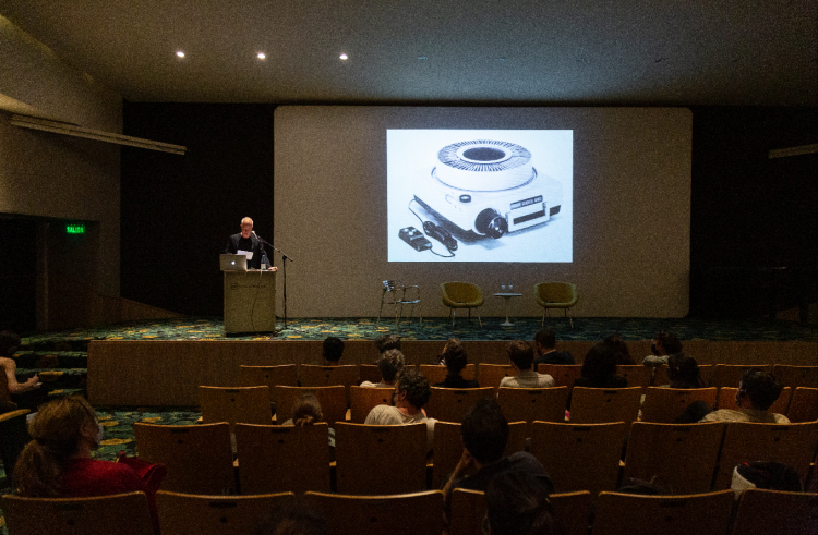 As part of the program for the “Pidgeon Audio Visual: Architects Speak for Themselves” exhibition, Columbia University professors Felicity D. Scott and Mark Wasiuta visited Buenos Aires to give a lecture in the auditorium of the Asociación Amigos del Museo Nacional de Bellas Artes. They presented a series of projects and exhibitions produced from research on audiovisual archives, placing the exhibition and the Pidgeon Audio Visual project within a broader context.